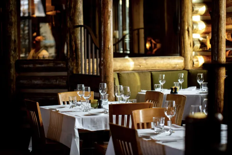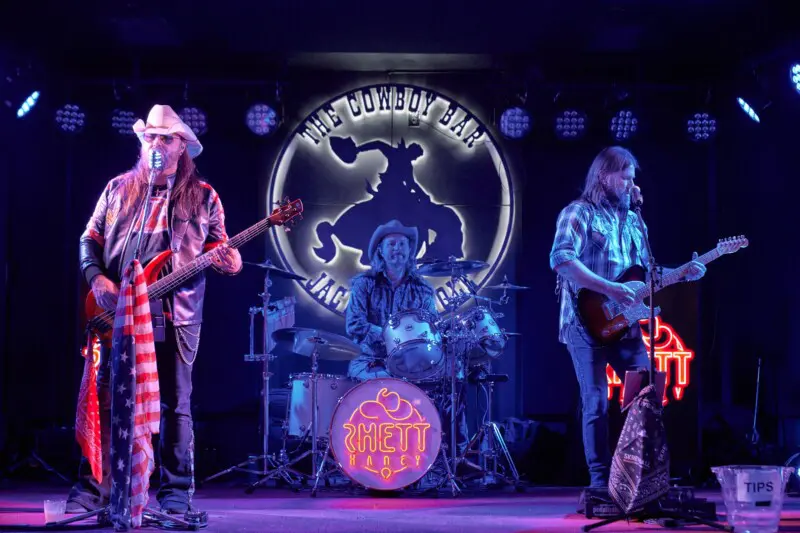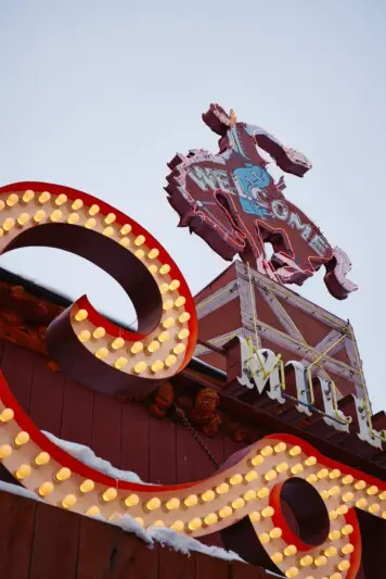 The Million Dollar Cowboy Bar, just steps from The Jacksonian, remains a fixture of Jackson Hole tradition, where locals and visitors have gathered for generations beneath the glow of neon and saddle barstools.
